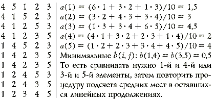 продолжений этого множества и подсчитаем среднее место каждого из 5 элементов в
