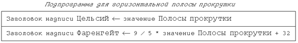 у надписей, и также изменяется значение свойства Value у полосы прокрутки.