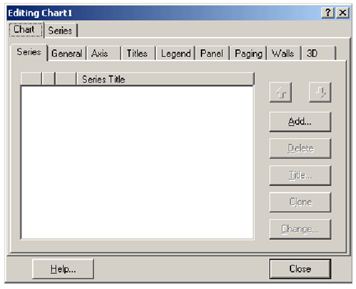 Рис. 3.6 Первое, что обязательно нужно сделать, это создать серию данных для графика (по умолчанию система назовет ее Series1). Для осуществления названного действия щелкните по кнопке Add; возникнет новое диалоговое окно, в котором редактор “рекламирует” все свои возможности: