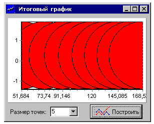 Рис. 3.8 Находившиеся справа подписи исчезнут, а площадь под график увеличится. Аналогичным образом на странице Titles сделаем невидимым синий заголовок TChart (данная “эстетическая” коррекция может показаться читателям не самой лучшей, но мы намерены ограничиться подписью в заголовке формы). Перейдем к написанию программы. Договоримся, что данные для обобщающего графика мы будем брать из табл. 1, куда после расчета каждой траектории заносятся ее интегральные характеристики. Данная таблица расположена на форме form3 и называется StringGrid1. Ради универсальности введем константы Narg и Nfunc, которые будут задавать номера столбцов аргумента графика и функции соответственно. Для извлечения необходимого значения из (строковой!) таблицы и преобразования его в число напишем следующую функцию. function getNumber(k,y:integer):double; var s:string; {аргумент/функция} begin if k=0 then k:=Narg else k:=Nfunc; {содержимое ячейки} s:=form3.StringGrid1.Cells[k,y];{замена десятич. '.' на ','} k:=pos('.',s); if k<>0 then s[k]:=',';{результат - вещественное число} getNumber:=strToFloat(s) end; Функция содержит два входных параметра; первый — (k) равен 0 при извлечении аргумента и 1, когда требуется получить из таблицы значение функции; второй параметр y есть просто номер необходимой строки. Функция выбирает необходимую константу с номером столбца, извлекает требуемое строковое значение, заменяет десятичную точку в изображении числа на запятую (русская версия разделения целой и дробной части) и, предварительно преобразовав строку в числовую форму, выдает полученное значение в качестве результата функции. Таким образом, все технические детали извлечения чисел из таблицы оказываются локализованными внутри рассмотренной функции. Теперь опишем, как программировать работу с компонентом Chart. Прежде всего необходимо “связать” созданную нами серию данных Series1 с компонентом Chart1: series1.ParentChart:=Chart1; Далее с помощью метода Clear очистим значения серии и, пока строки табл. 1 не пусты, будем дополнять точки в набор Series1 вызовом метода AddBubble. Последний имеет 5 аргументов, так что стоит их хотя бы кратко прокомментировать. 1. Значение аргумента для точки графика. 2. Значение функции для точки графика. 3. Радиус кружка, изображающего точку (обратите внимание: не в пикселях, а в масштабе графика; с этим еще придется повозиться!). 4. Подпись под каждой точкой; мы выбрали значение аргумента, преобразовав его в строковое представление стандартной функцией FloatToStr. 5. Цвет точки; мы выбрали красный. В итоге получаем следующий рабочий цикл заполнения набора Series1. n:=1; while form3.StringGrid1.Cells[Nfunc,n]<>'' do {пока есть числа} begin addBubble(getNumber(0,n), getNumber(1,n),radius, floatToStr(getNumber(0,n)),clRed); n:=n+1 {к следующей строке таблицы 1} end; После занесения значений компонент автоматически выбирает масштаб и рисует все входящие в него точки. Остается последняя проблема — выбор значения для переменной radius. Ее нельзя задать константой, поскольку “пузырек” масштабируется так же, как и график, т.е. его видимый размер оказывается зависящим от значений функции, по которым строится график. Это, конечно, неудобно и порой приводит к тому, что точки просто исчезают — таким маленьким оказывается их радиус. Универсальное решение проблемы, по-видимому, невозможно. Наиболее разумно связать размер точек с областью изменения функции (она равна fmax – fmin) и взять определенную часть от нее. Экспериментальная проверка, однако, показала, что реализо