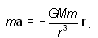 5. Движение в центральном поле тяготенияПостановка задачи Задача о движении тела в центральном поле тяготения является хорошим примером, демонстрирующим возможности использования ПК для изучения поведения объекта, подчиняющегося некоторым общим физическим законам. Процесс выведения спутника на орбиту обычно разбивается на два этапа. На первом этапе спутник поднимается над атмосферой практически вертикально на некоторую высоту. Затем обычно последняя ступень ракетоносителя придает спутнику необходимую горизонтальную скорость, и далее он двигается по инерции. Рассмотрим инерционный полет небольшого тела (спутника) около притягивающего центра с большой массой (Земли). Будем интересоваться тем, какие траектории спутника возможны, какой должна быть его минимальная скорость вблизи поверхности Земли, чтобы он, двигаясь по круговой траектории, не упал на Землю (первая космическая скорость), какой должна быть минимальная начальная скорость спутника, чтобы получилась незамкнутая траектория и спутник ушел от Земли (вторая космическая скорость). В численном эксперименте можно также проверить законы Кеплера: 1) притягивающий центр расположен в одном из фокусов орбиты; 2) радиус-вектор от Солнца до планеты “заметает” равные площади за равные промежутки времени; 3) квадраты периодов обращения спутников вокруг притягивающего центра относятся как кубы больших полуосей эллипсов их орбит. В основу модели мы положим закон всемирного тяготения. Будем считать, что на тело, движение которого рассматривается, действует только сила тяготения и уравнение Ньютона имеет вид: