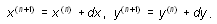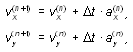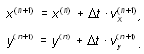 Координаты нового положения частицы в последовательные моменты времени будем определять так: