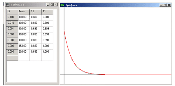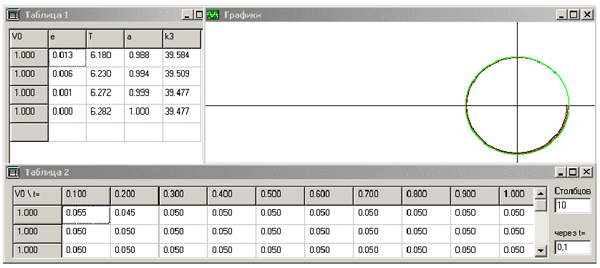 Рис.5.3. Состояние окон с результатами после эксперимента по выбору dt Траектория получилась замкнутая. Если