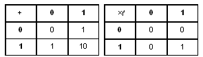 или в десятичной системе 6 + 10 = 16 Для выполнения арифметических операций (сложение, вычитание, умножение, деление) в системе счисления с основанием P необходимо иметь соответствующие таблицы сложения и умножения. Для P = 2 таблицы представлены ниже.