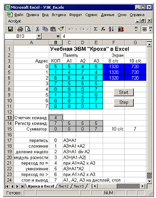 Microsoft Excel, мы смоделировали работу ЭВМ. Остается
