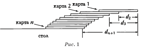 следовательно, dk + 1 = dk + 1/k. Это означает, что вторая карта будет сдвинута на половину единицы длины относительно третьей карты, которая сдвинута на треть единицы длины относительно четвертой карты, и т.д. Отсюда по индукции вытекает общая формула