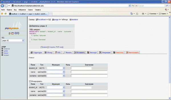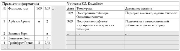 данных “Страница школьного журнала”: от