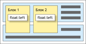 Если плавающие блоки с однотипным указанием (float:left или float:right ) идут в коде непосредственно друг за другом, то каждый следующий блок пытается пристроиться со свободной стороны предыдущего блока на одной с ним горизонтали, если есть место.