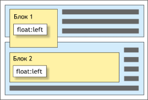 Если места нет, блок, который в коде идет дальше, смещается ниже. 3.1.1.7. Плавающий внутри плавающего Пусть в потоке один блок вложен в другой: <DIV id="block1"> <DIV id="block2"> ... </DIV> </DIV>