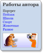 CSS: /* Таблица занимает по ширине все доступное пространство */ .gallery { width: 100%; margin: 0; padding: 0; border: none; text-align: center; } /* Ячейка занимает половину ширины таблицы и имитирует паспарту */ .gallery .pics TD { width: 50%; margin: 0; padding: 20px; background:#e5e5e5; border: 1px solid black; } /* Картинку окружает белая рамка */ .gallery .pics TD IMG { border: 2px solid white; } Немного CSS, и каждая ячейка нечетной строки таблицы превращается в паспарту (“картонную” рамку). Смотрится неплохо, а потраченные усилия минимальны, они не требуют привлечения дополнительной графики. Максимальная ширина картинки, задаваемой элементом IMG, в данной разметке составляет 170 пикселей, высота не ограничена. Картинка будет автоматически центрироваться по центру паспарту. Стилевые определения, относящиеся к галереям, поместим в отдельный стилевой файл work.css. Подсоединять этот файл будем только к страницам из бокса “Работы автора”. Тем самым, не будем загромождать основной стилевой файл main.css, что упростит работу с ним и немного ускорит загрузку сайта. Страница work01.htm (соответствует пункту “Портрет”) будет иметь вид: <!DOCTYPE HTML PUBLIC "-//W3C//DTD HTML 4.01 Transitional//EN" "http://www.w3.org/TR/html4/loose.dtd"> <HTML lang="ru"> <HEAD> <META http-equiv="Content-Type" content="text/html; charset=windows-1251"> <META http-equiv="imagetoolbar" content="no"> <META name="keywords" content="Фотография, Роботландский университет"> <META name="description" content="Сайт РУ, посвященный фотографии."> <META http-equiv="author" content="А.Дуванов"> <META http-equiv="Content-Style-Type" content="text/css"> <STYLE type="text/css">@import url(main.css);</STYLE> <STYLE type="text/css">@import url(work.css);</STYLE> <SCRIPT language="JavaScript" type="text/javascript" src="main.js"></SCRIPT> <TITLE>Портрет</TITLE> </HEAD> <BODY> <SCRIPT language="JavaScript" type="text/javascript"> PutHeader(-1); // Заголовочная часть PutМеню(-1); // Меню </SCRIPT> <DIV id="wrapper"> <DIV id="content"> <DIV class="wrap"> <H2>Портрет</H2> <TABLE class="gallery" cellspacing=10> ... </TABLE> </DIV> </DIV> <SCRIPT language="JavaScript" type="text/javascript"> PutSizebar(0); // Боковая панель </SCRIPT> </DIV> <SCRIPT language="JavaScript" type="text/javascript"> PutМеню(-1); // Меню PutFooter(); // Подвал </SCRIPT> </BODY> </HTML> Обратите внимание в этом коде на следующие моменты: · в головной части кода подключаются два стилевых файла — основной main.css и вспомогательный work.css ;· вызов функции PutМеню выполняется с параметром -1 , так как на странице “Портрет” все пункты главного меню должны быть ссылками;· вызов функции PutSizebar выполняется с параметром 0 , так как на странице “Портрет” первая ссылка на боковой панели (нумерация с нуля) должна превратиться в обычный текст.